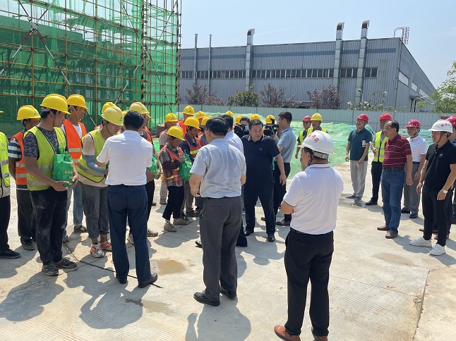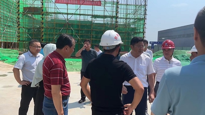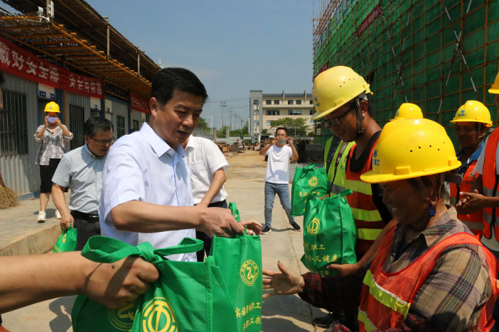 近日,黃山市天氣持續(xù)高溫酷熱,驕陽似火,黃山博盛消防裝備有限公司新廠區(qū)1-2#車間及研發(fā)中心工人仍堅(jiān)守在施工一線,頂烈日,搶工期。7月26日上午,屯溪區(qū)委書記吳旭光、區(qū)委副書記、區(qū)長楊林,區(qū)人大常委會(huì)主任朱學(xué)軍,區(qū)政協(xié)主席袁震宇,區(qū)政協(xié)副主席杜祖紅等一行深入工地現(xiàn)場(chǎng),開展“送清涼進(jìn)工地”活動(dòng),看望慰問項(xiàng)目部一線職工。