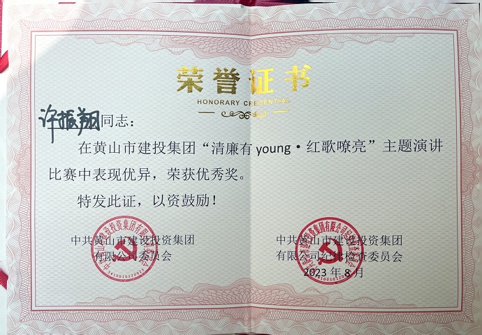 為慶祝中國共產(chǎn)黨成立102周年,深入推動(dòng)學(xué)習(xí)貫徹習(xí)近平新時(shí)代中國特色社會(huì)主義思想主題教育,全面貫徹落實(shí)黨的二十大精神,8月18日,由黃山建投集團(tuán)舉辦的“清廉有young·紅歌嘹亮”主題思政課隆重舉行,參賽選手以生動(dòng)的語言、動(dòng)聽的歌聲、真摯的感情為大家?guī)硪粓?chǎng)別開生面的視聽盛宴,黃山建工集團(tuán)青年員工許振翔在思政課演講比賽中取得優(yōu)勝獎(jiǎng)。