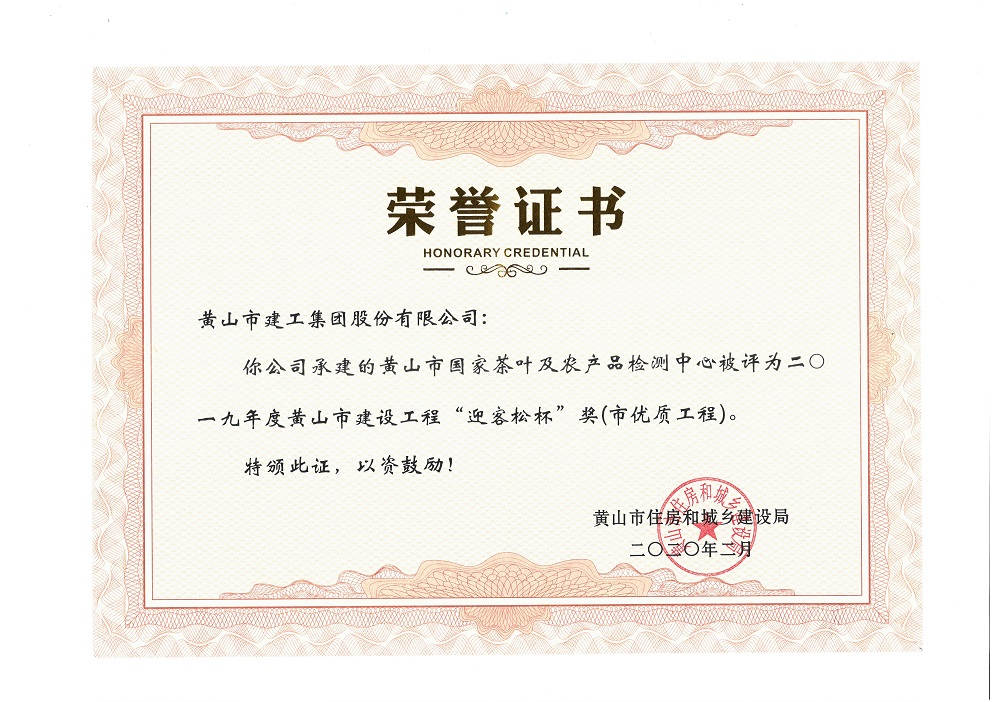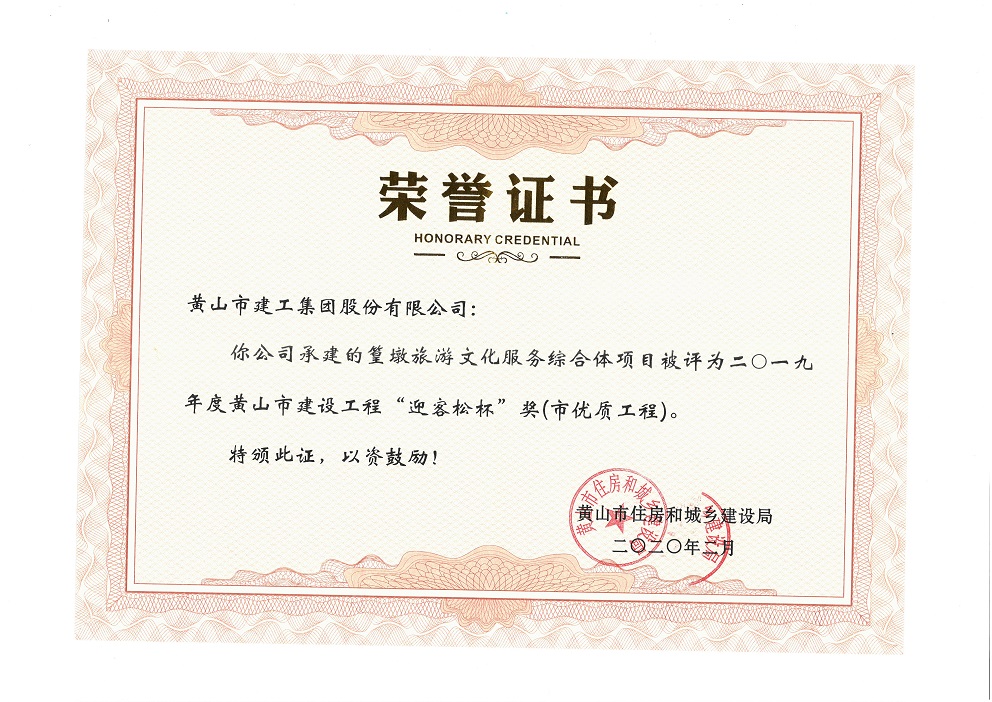 2020年度黃山市建設(shè)工程優(yōu)質(zhì)工程獎